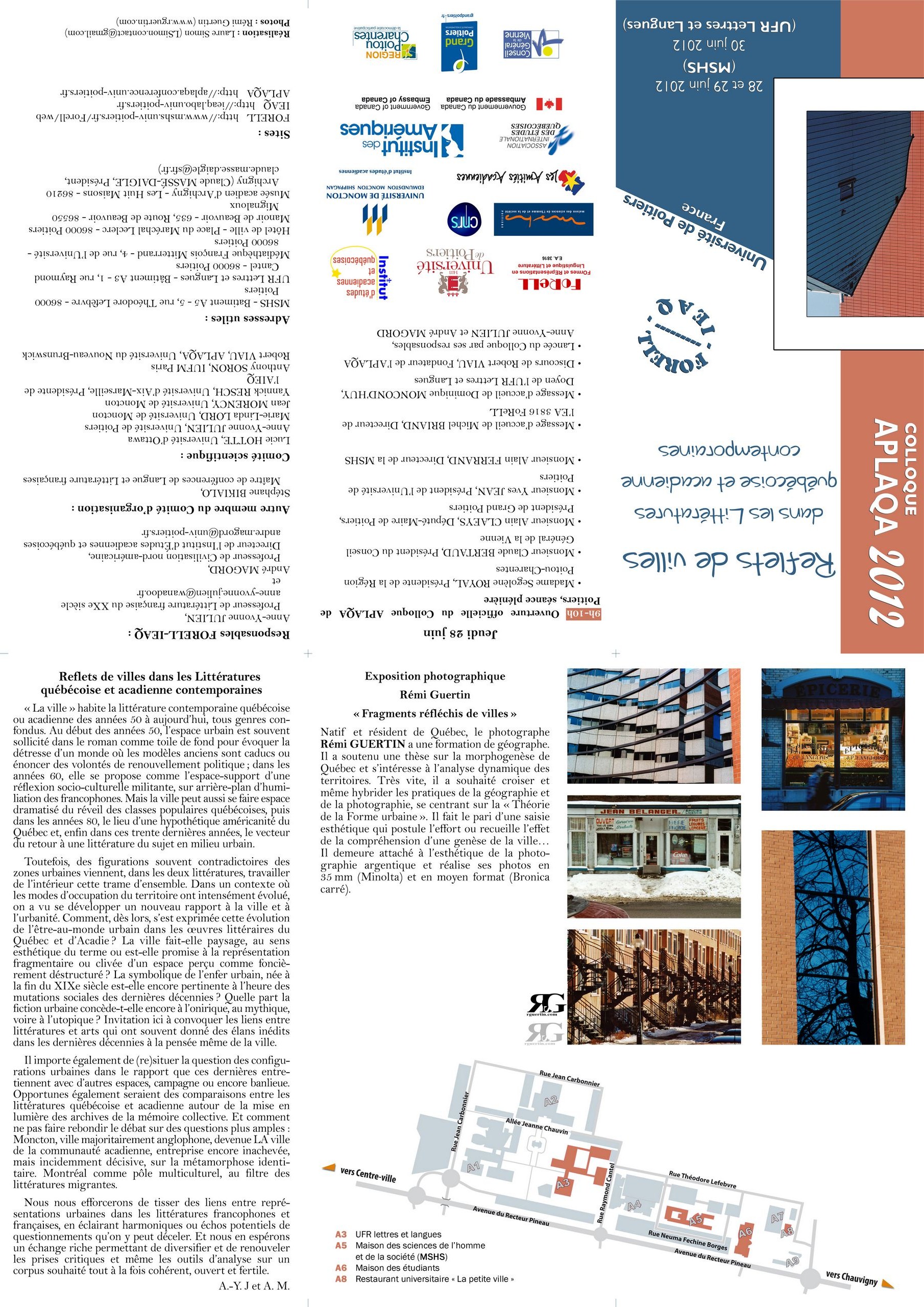 Mireille Calle-Gruber, Sarah-Anaïs Crevier Goulet et Elodie Vignon ont participé au colloque de l’APLAQA « Reflets de villes dans les littératures québécoise et acadienne contemporaines » du 28 au 30 juin 2012 à Poitiers.